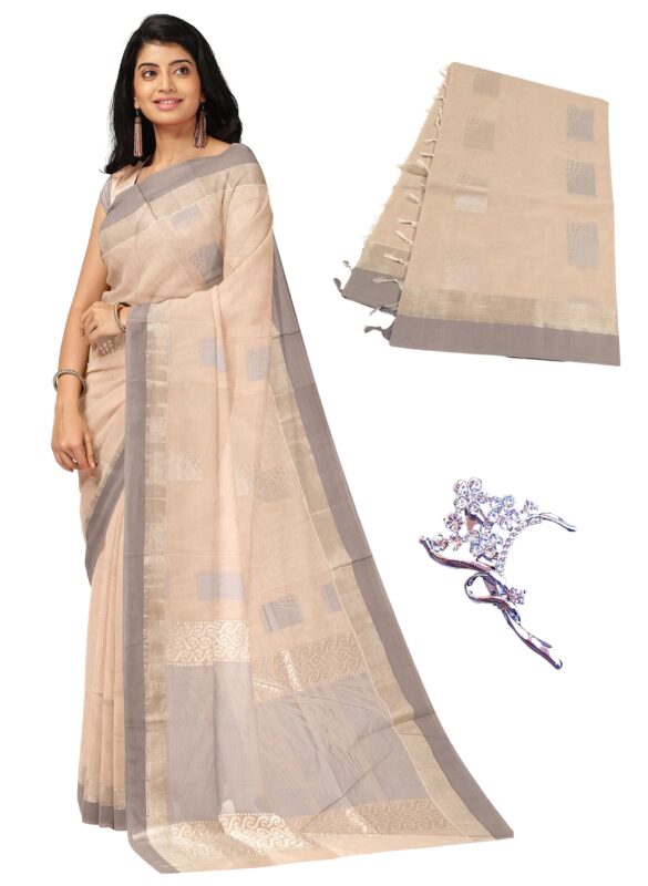 NandaVanam Women’s Negamam Cotton Sarees with Rich Thread Pallu | 80 Count Negamam Cotton Saree | Coimbatore Cotton Saree – With Blouse