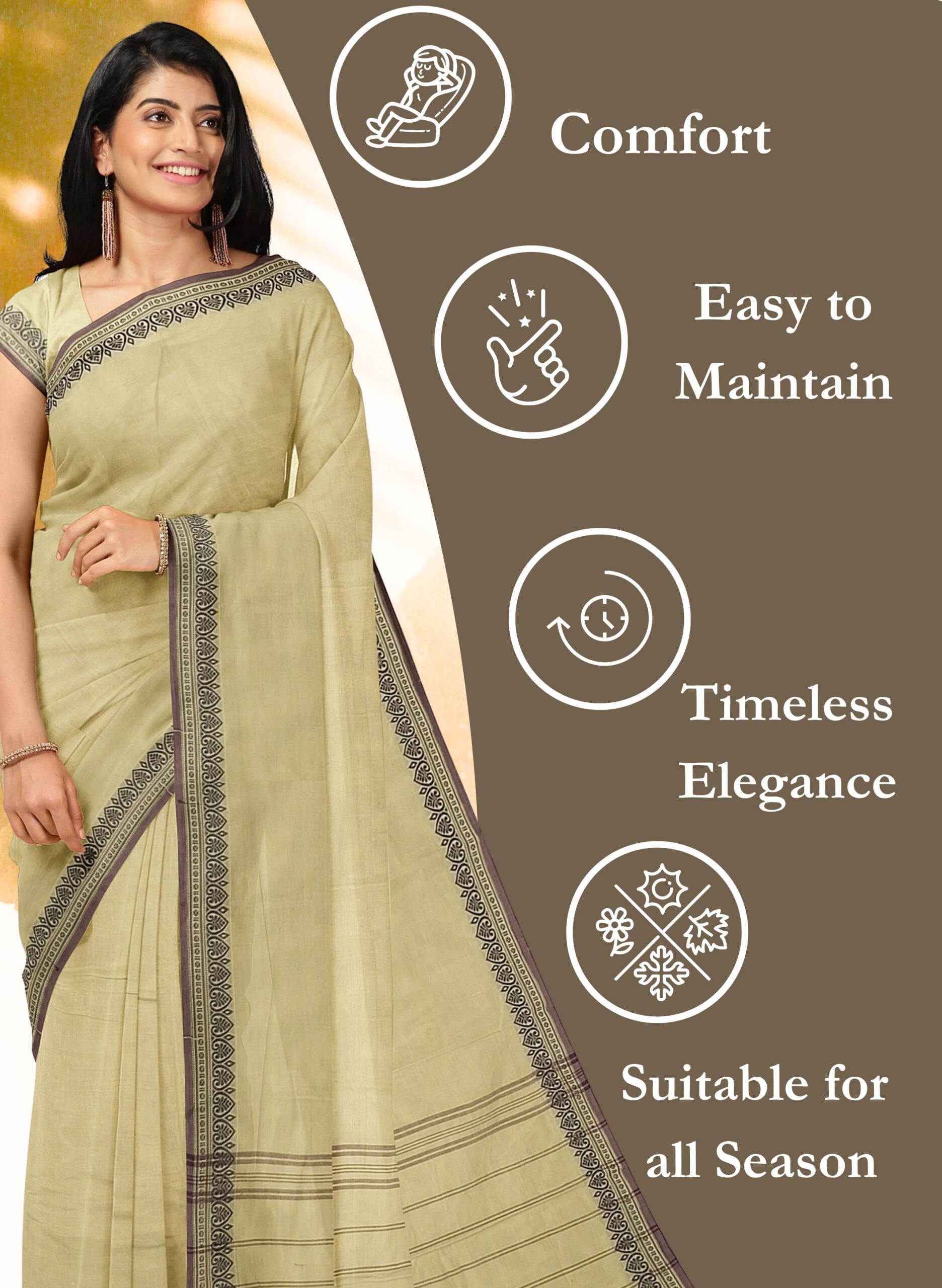 NandaVanam Women’s Chettinad Cotton Sarees | Handloom Saree With Blouse | Pure Cotton Sarees For Women Daily Use & All Occasion Wear | Soft, Comfort Cotton Sareemen’s Chettinad Cotton Sarees | Handloom Saree With Blouse