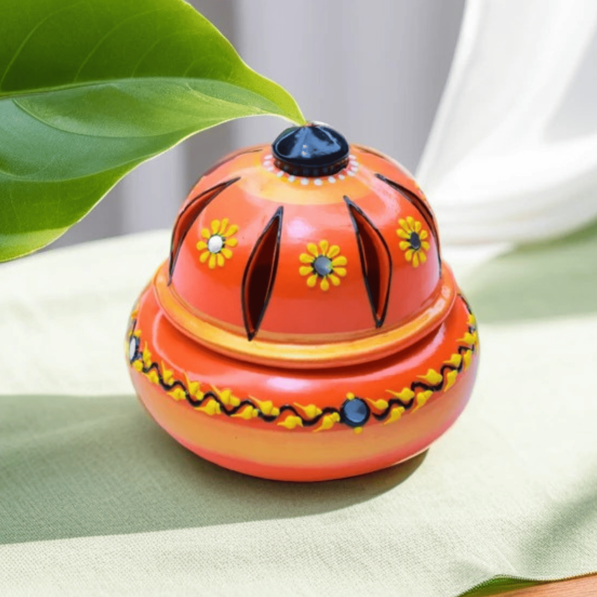 Decorative & Designer Ash Catcher: Beautifully designed in Orange, this incense ash catcher enhances home décor. Use it as a pooja room accessory or as a spiritual gift item.