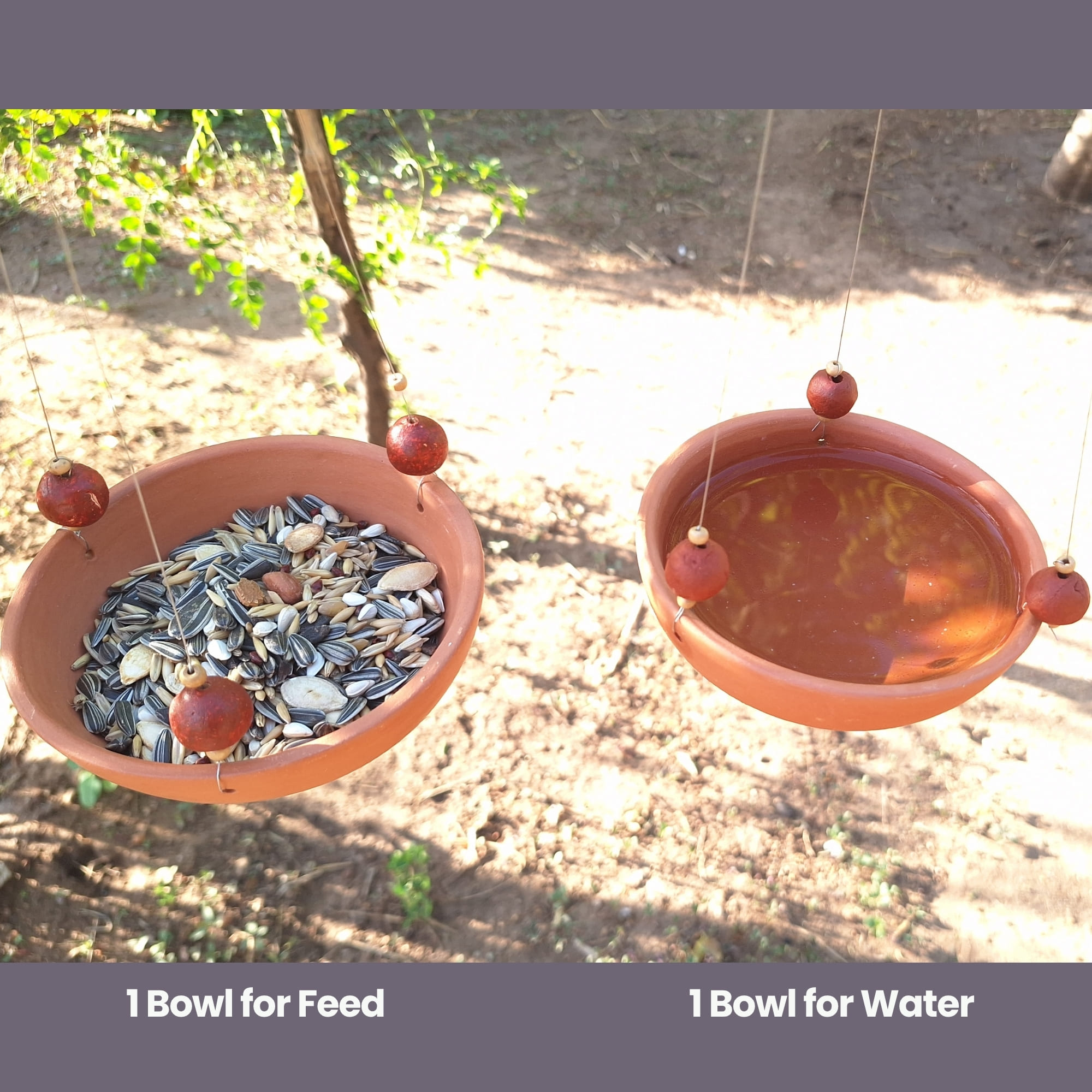 2-in-1 Bird Feeder & Water Bowl – Dual hanging design for serving both bird seeds and fresh water.